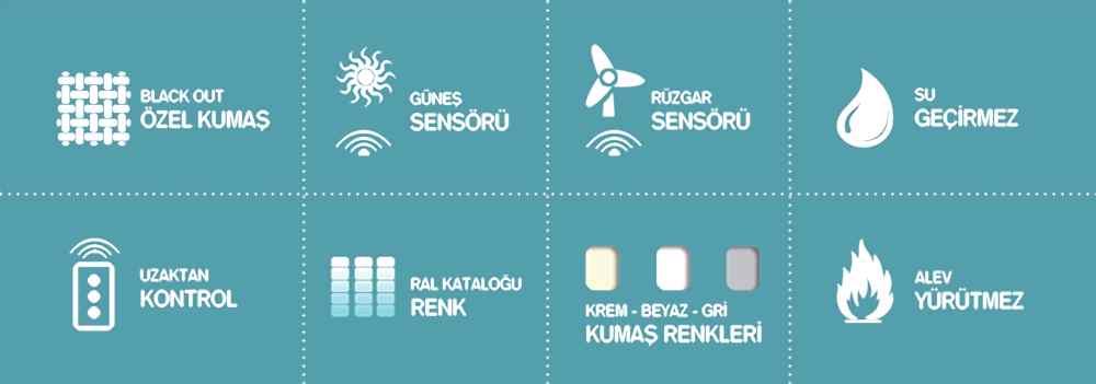 Uzaktan kumanda sistemi ile kolay bir şekilde açılıp/kapanma seçeneği sunan bu sistemler, üzerinde yer alan kumaş tozu ve kiri üstünde tutmayan bir tasarıma sahiptir. Teknolojisi ve avantajları ile rahat bir kullanım imkanı sağlar.